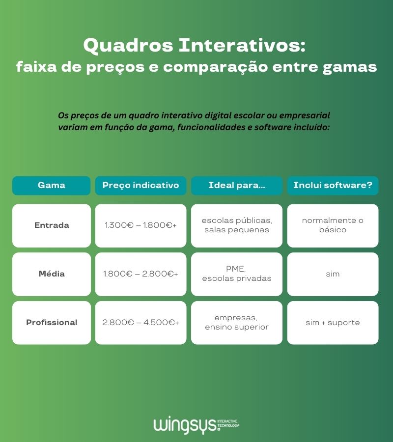 Os quadros interativos estão a transformar as salas de aula e as salas de reuniões em ambientes mais dinâmicos, colaborativos e eficientes. Mas antes de investir nesta tecnologia, é essencial compreender as diferenças entre as opções disponíveis, os critérios técnicos que realmente importam e os custos associados. Com este tipo de informação, terá a certeza que o investimento vale a pena.