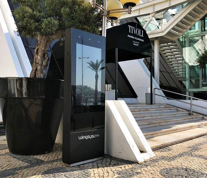 Solution: Installation of TA007P indoor Digital Totems and QX003 outdoor Digital Totems in the Vilamoura Marina space, with information about the services and campaigns of the Tivoli hotel, made available remotely through the Digital Signage software.