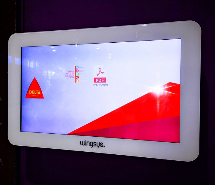 Solução: Instalação dos mupis digitais interativos TA007W e TA007P de 43" com software interativo para exibição de conteúdos relevantes para os colaboradores que frequentam a zona de produção e fabril da Delta Cafés.